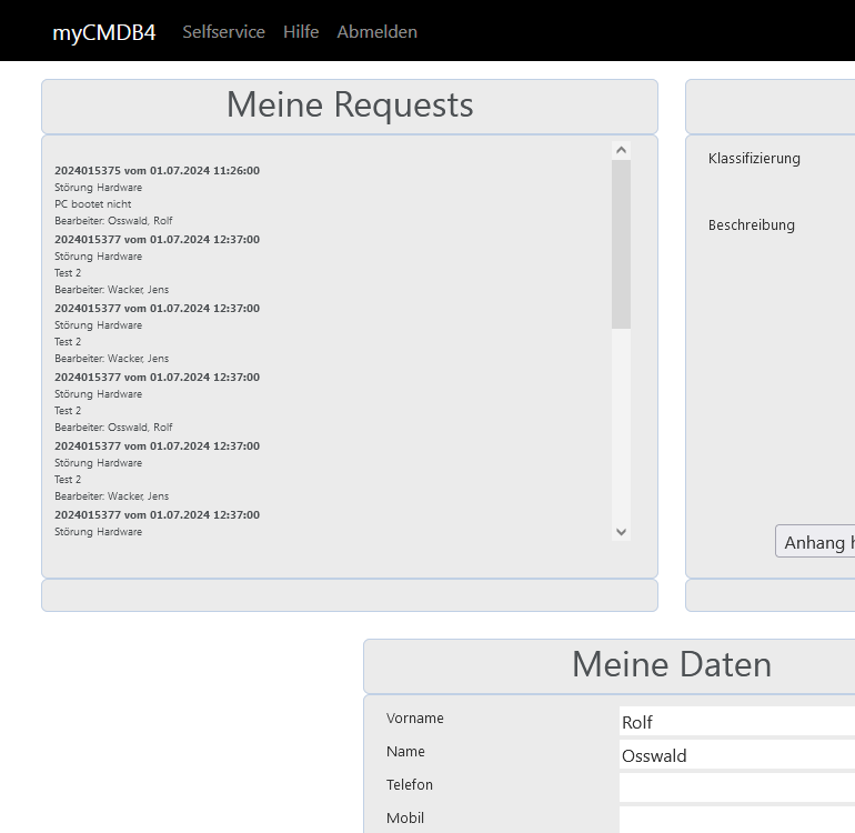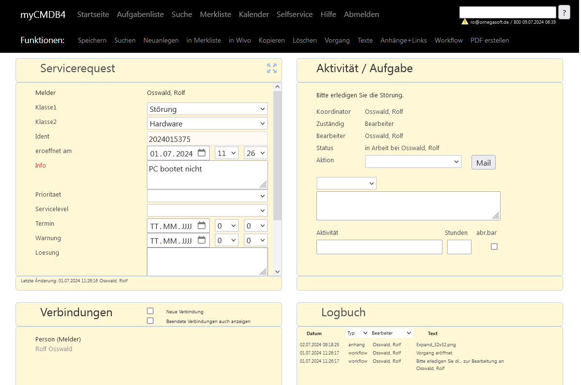 - den aktuellen Bearbeitungsstand z.B. eines Servicerequests.