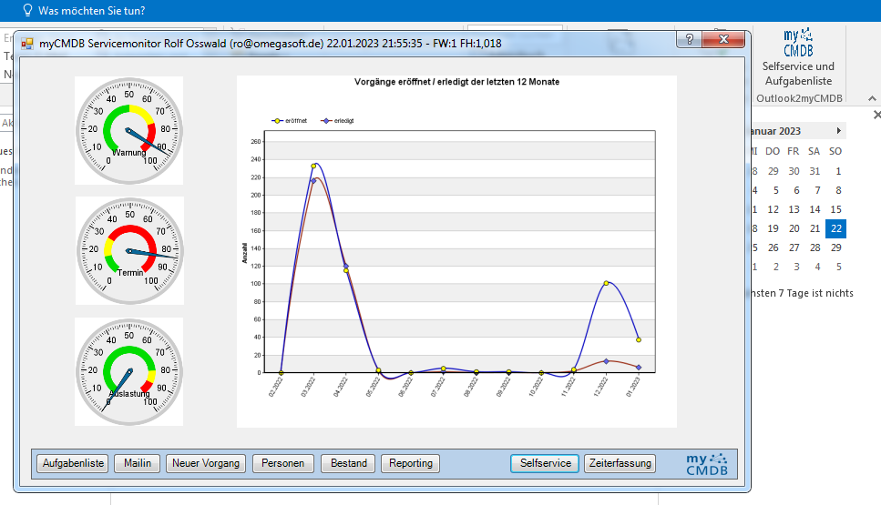 Aufgaben abarbeiten, weiterleiten, mit dem Kunden kommunizieren, neue Vorgänge anlegen mit vollständigen Zugriff auf die Personen- und Bestandsdaten aus myCMDB